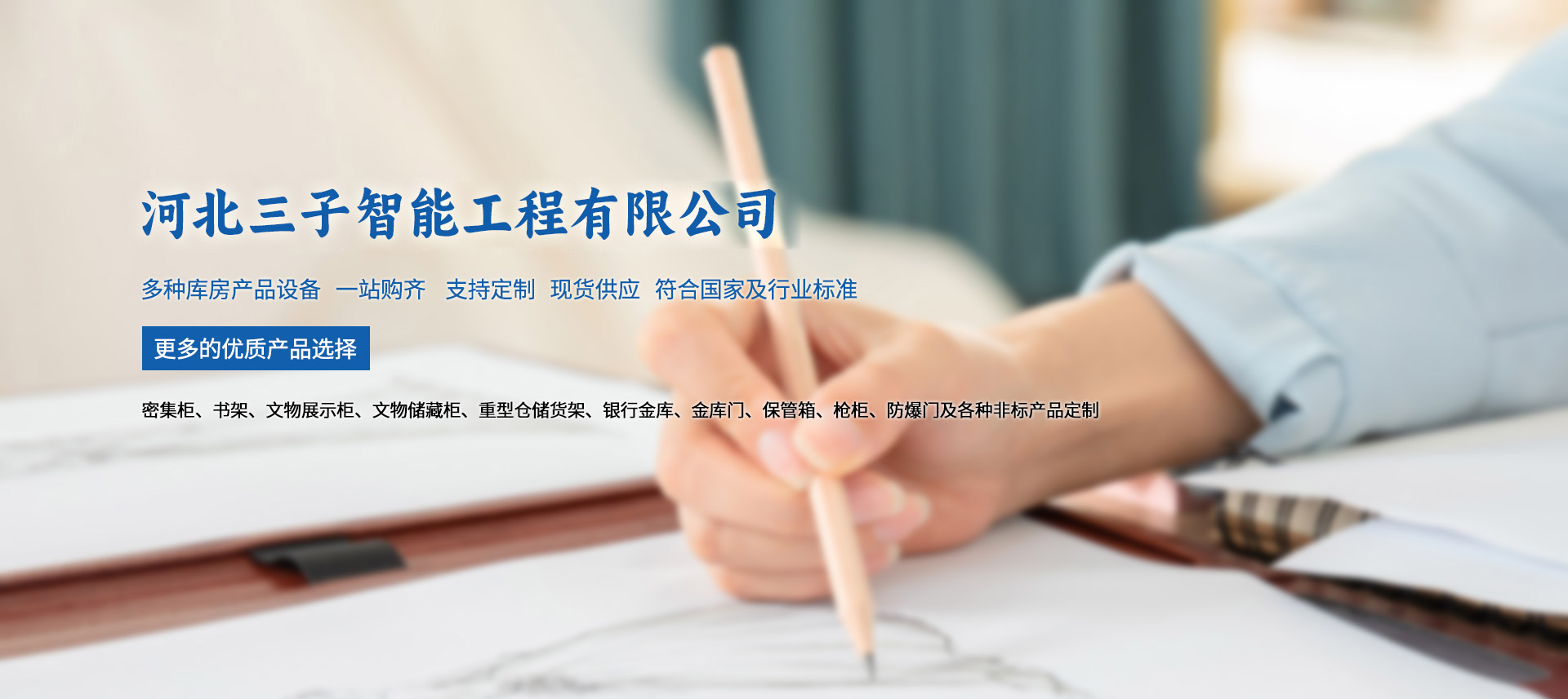 河北三子智能工程有限公司主營密集柜、書架、文物展示柜、文物儲藏柜、重型倉儲貨架、銀行金庫、金庫門、保管箱、槍柜、防爆門及各種非標(biāo)產(chǎn)品定制。我們集研發(fā),設(shè)計,生產(chǎn),銷售和服務(wù)于一體,擁有國內(nèi)先進(jìn)的設(shè)備和專業(yè)的制作團(tuán)隊,我們秉承踏實,創(chuàng)新,責(zé)任的企業(yè)精神服務(wù)于檔案存儲,倉儲物流,農(nóng)業(yè)部,博物館,美術(shù)館,銀行,部隊,學(xué)校等多個領(lǐng)域,我們始終堅持用戶至上和精益求精為客戶提供優(yōu)質(zhì)的產(chǎn)品及服務(wù)。